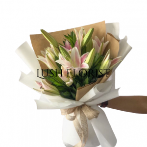 Because the flowers are wrapped in different flower artists, they may not be exactly the same in form and match with the pictures, but Lush Florist guarantees that the freshness, quantity are the same.  Lush Florist reserves the right to make subsitutions of flowers, greenery, baskets, vases, wrapping papers, fruits, soft-toys and any other material used in our flower arrangements with others of equal or higher value should the original materials be unavailable and without inform customer.