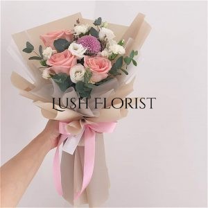 Because the flowers are wrapped in different flower artists, they may not be exactly the same in form and match with the pictures, but Lush Florist guarantees that the freshness, quantity are the same.  Lush Florist reserves the right to make subsitutions of flowers, greenery, baskets, vases, wrapping papers, fruits, soft-toys and any other material used in our flower arrangements with others of equal or higher value should the original materials be unavailable and without inform customer.