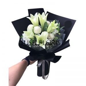 Because the flowers are wrapped in different flower artists, they may not be exactly the same in form and match with the pictures, but Lush Florist guarantees that the freshness, quantity are the same.  Lush Florist reserves the right to make subsitutions of flowers, greenery, baskets, vases, wrapping papers, fruits, soft-toys and any other material used in our flower arrangements with others of equal or higher value should the original materials be unavailable and without inform customer.