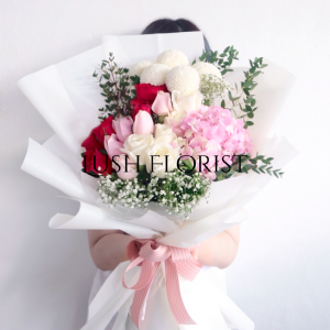 Because the flowers are wrapped in different flower artists, they may not be exactly the same in form and match with the pictures, but Lush Florist guarantees that the freshness, quantity are the same.  Lush Florist reserves the right to make subsitutions of flowers, greenery, baskets, vases, wrapping papers, fruits, soft-toys and any other material used in our flower arrangements with others of equal or higher value should the original materials be unavailable and without inform customer.