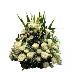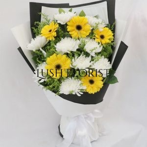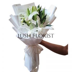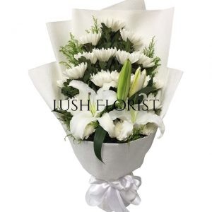 Because the flowers are wrapped in different flower artists, they may not be exactly the same in form and match with the pictures, but Lush Florist guarantees that the freshness, quantity are the same.  Lush Florist reserves the right to make subsitutions of flowers, greenery, baskets, vases, wrapping papers, fruits, soft-toys and any other material used in our flower arrangements with others of equal or higher value should the original materials be unavailable and without inform customer.