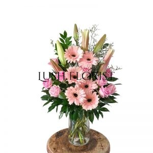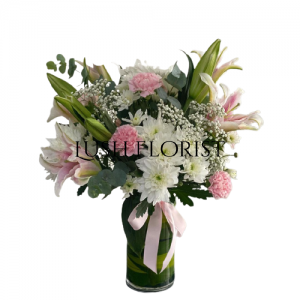 Because the flowers are wrapped in different flower artists, they may not be exactly the same in form and match with the pictures, but Lush Florist guarantees that the freshness, quantity are the same.  Lush Florist reserves the right to make subsitutions of flowers, greenery, baskets, vases, wrapping papers, fruits, soft-toys and any other material used in our flower arrangements with others of equal or higher value should the original materials be unavailable and without inform customer.