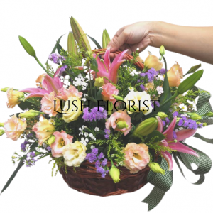 Lush Florist reserves the right to make subsitutions of flowers, greenery, baskets, vases, wrapping papers, fruits, soft-toys and any other material used in our flower arrangements with others of equal or higher value should the original materials be unavailable and without inform customer.