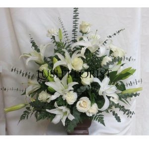Because the flowers are wrapped in different flower artists, they may not be exactly the same in form and match with the pictures, but Lush Florist guarantees that the freshness, quantity are the same.  Lush Florist reserves the right to make subsitutions of flowers, greenery, baskets, vases, wrapping papers, fruits, soft-toys and any other material used in our flower arrangements with others of equal or higher value should the original materials be unavailable and without inform customer.