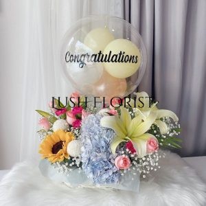 Because the flowers are wrapped in different flower artists, they may not be exactly the same in form and match with the pictures, but Lush Florist guarantees that the freshness, quantity are the same.  Lush Florist reserves the right to make subsitutions of flowers, greenery, baskets, vases, wrapping papers, fruits, soft-toys and any other material used in our flower arrangements with others of equal or higher value should the original materials be unavailable and without inform customer.